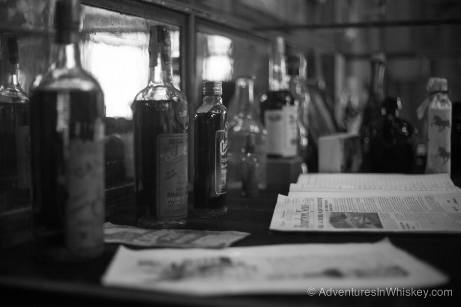 Old George Dickel bottles and memorabilia at the Visitor’s Center.
