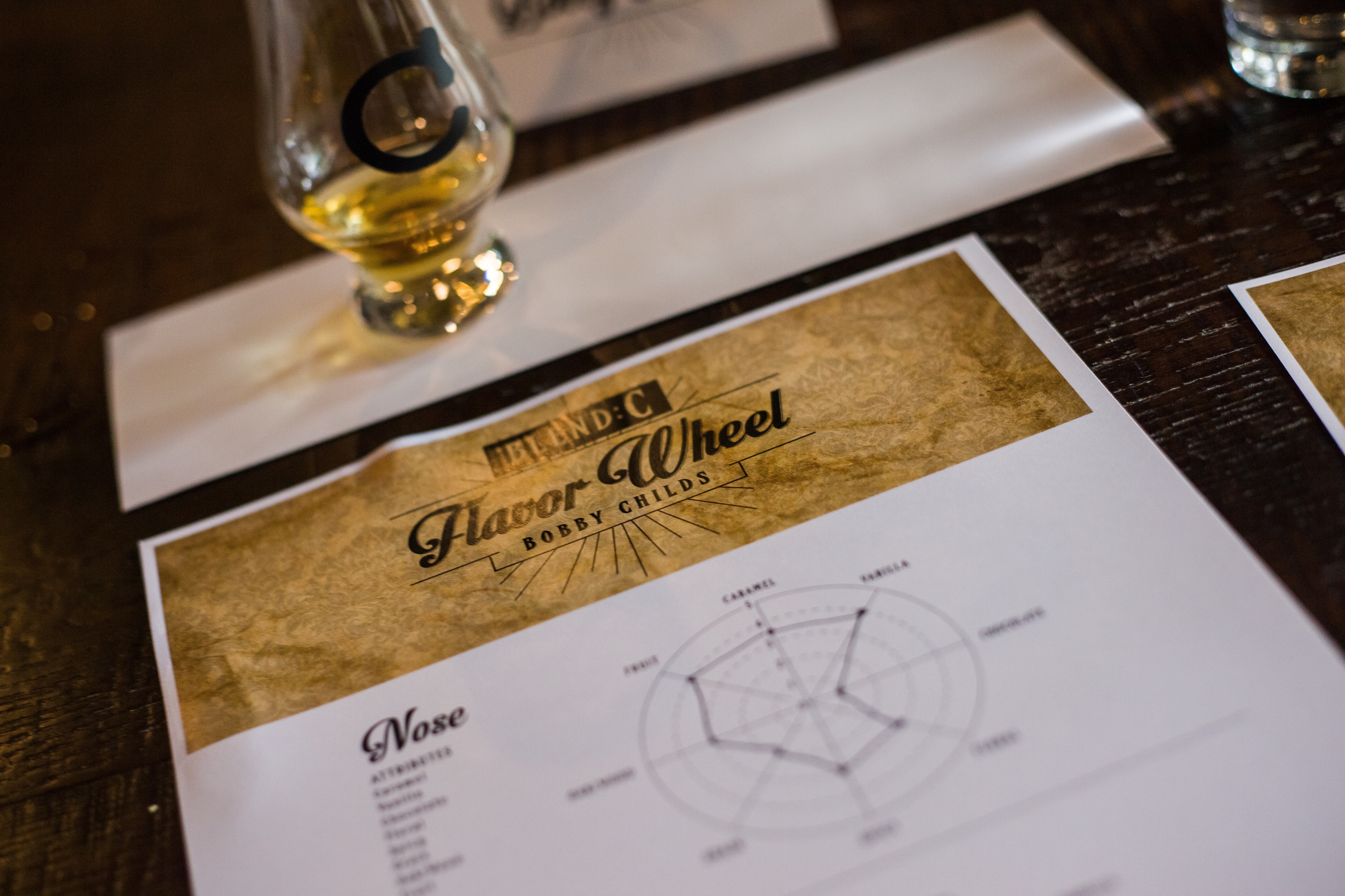 The tasting itself was very formal. It took place at Gamlin Whiskey House in St. Louis. We sat around a large table with a place setting for each one of the attendees. I was seated next to Chuck. Honestly the man probably forgets more about bourbon in a day than I’ll know in a lifetime. We were each passed a pour of a blend, labeled “A”, in Glencairn glass. We took notes quietly, as we weren’t allowed to share our thoughts until the very end. Once we were all done with that particular sample, the next blend, “B”, was passed around and the whole process started over until all four blends were tasted. Blends “C” and “D” were the two favorites of the group. We were given a fresh sample of those two blends for another taste. The overall choice of the group was “D”.