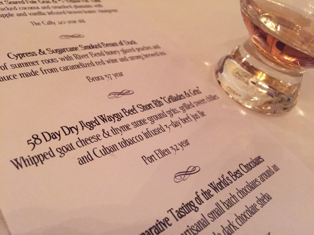 Among those seated at my table was Dr. Nick Morgan and Ti Adelaide Martin, co-proprietor of Commander’s Palace. Needless to say, many interesting conversations came about. One by one, exquisite culinary creations left the kitchen and landed on the table in front of us along with a pour of one of the night’s featured whiskies to complete the pairing. As each whisky was served, a member of Diageo’s team introduced the whisky and provided a bit of background. One highlight of the night was an Old Fashioned that was brought to someone at our table, who shared it with the rest of us. Nothing out of the ordinary, except that the cocktail in question was made with Port Ellen. Sacrilege? Maybe. Delicious? Absolutely.