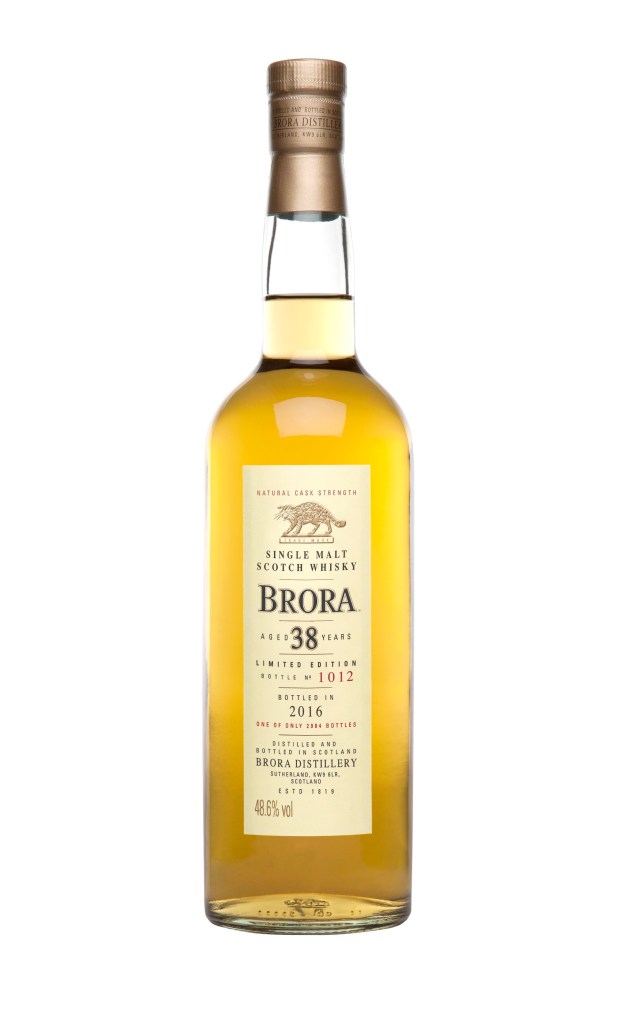 I’m a fan of Clynelish, so I couldn’t pass up the chance to review a whisky from sister distillery, Brora. Sadly, Brora no longer exists, and hasn’t for quite a while. The history of the two distilleries is interesting, and I’ll explore that history when I get around to reviewing Clynelish on this blog. In the meantime we have Brora 38-year-old, the oldest ever released in this series. This bottling was distilled in 1977 and selected from refill American oak hogsheads and refill European oak butts. Brora 38 is bottled at a cask strength of 48.6% abv and available at a retail price of $2,200. There is so little of this whisky to go around. Press materials paint a scary picture: