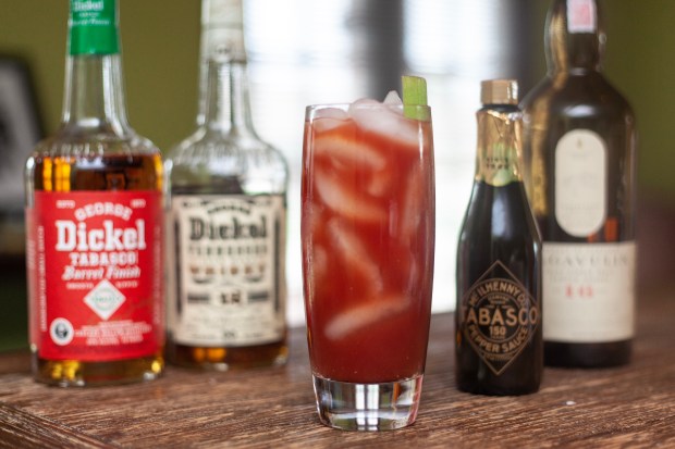 I wanted to use this Tabasco release in a Bloody Mary, but with whiskey instead of vodka. I don’t like a heavy Bloody Mary, so no horseradish here. George Dickel No. 12 is the base spirit, along with a little George Dickel Tabasco Barrel Finish. I also added a bit of Lagavulin 16 to add some smoky complexity.