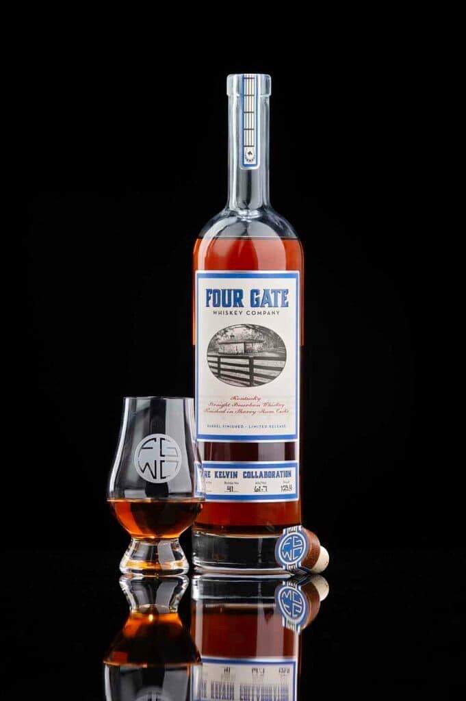 Every batch of Four Gate is to be barrel finished, barrel proof, and unique. The first batch, “The Kelvin Collaboration,” is a 5- to 11-year-old Kentucky Straight Bourbon Whiskey finished in ex-sherry rum casks bottled at 61.7% ABV. The bourbon came from a mash bill of 74% corn, 18% rye, and 8% malted barley. “The Kelvin Collaboration” yielded 1,732 bottles released in Kentucky and Tennessee at a suggested price of $199.99.
