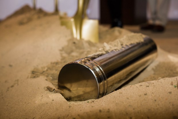 After a few words from everyone, Brown mentioned the company is burying a time capsule. Inside is a bottle of Sazerac Rye, Peychaud’s bitters, a rocks glass, and a recipe for the cocktail.