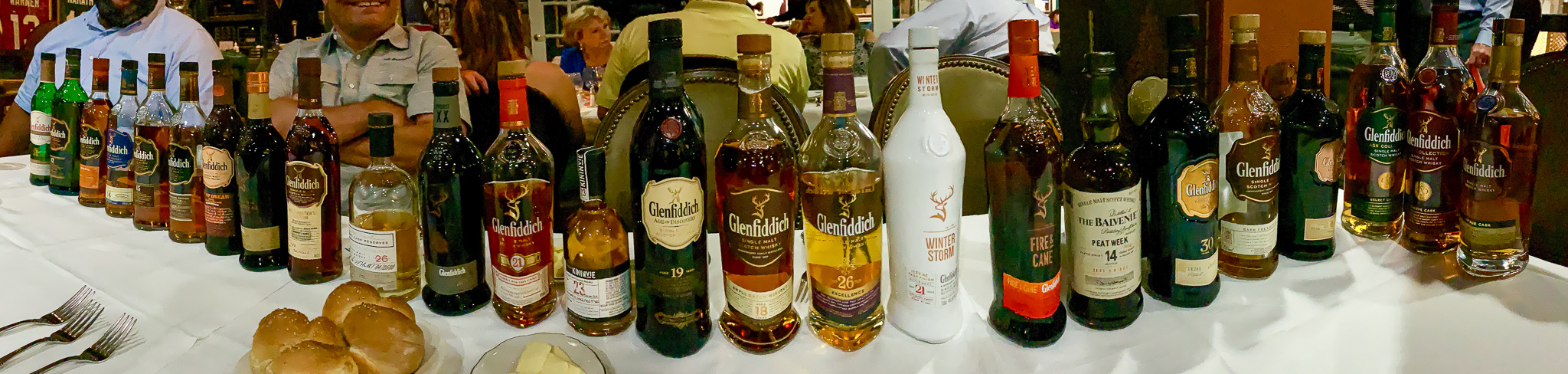 We made our way to the restaurant where the six of us began lining up bottles of whisky, mostly Glenfiddich, on a long table. Twenty seven bottles in total. So many that we couldn’t line up the bottles neatly down the longside of the table. With some appetizers served, we began. We did a round robin, of sorts, allowing every person to choose the next pour. As we nosed and tasted, the two brand ambassadors casually presented background on every pour.
